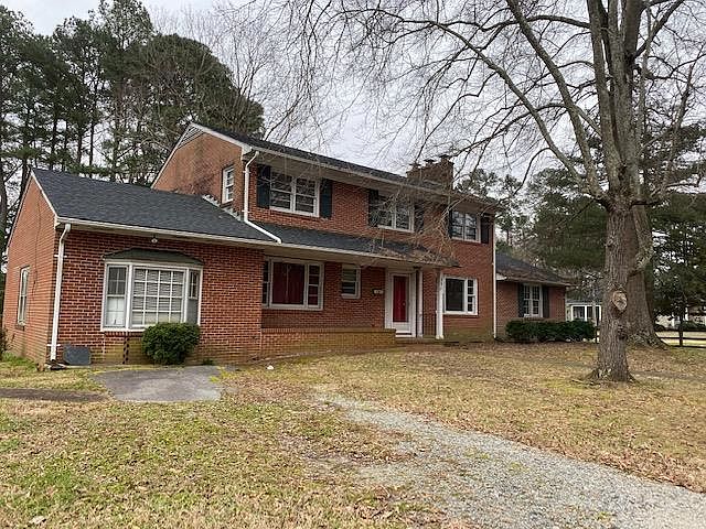 Must See! Spacious 5-6 bedroom, 3 1/2 bath brick Colonial home on large lot. Beautiful wood floors. Large rooms. Master bedroom suites upstairs and down. Extra bedrooms perfect for office, playroom, sewing room, exercise room. Screened porch off of the great room. Lots of lovely built-ins in great room(living room) and family room. Family room opens onto patio. Walk-out basement. Perfect for large family or entertaining! New roof, new heat exchange on furnace in 2019. Quiet neighborhood convenient to downtown, Fort Pickett, Route 460. Property sold as is, needs some work, TLC-exterior paint, power washing, bathrooms need updating.