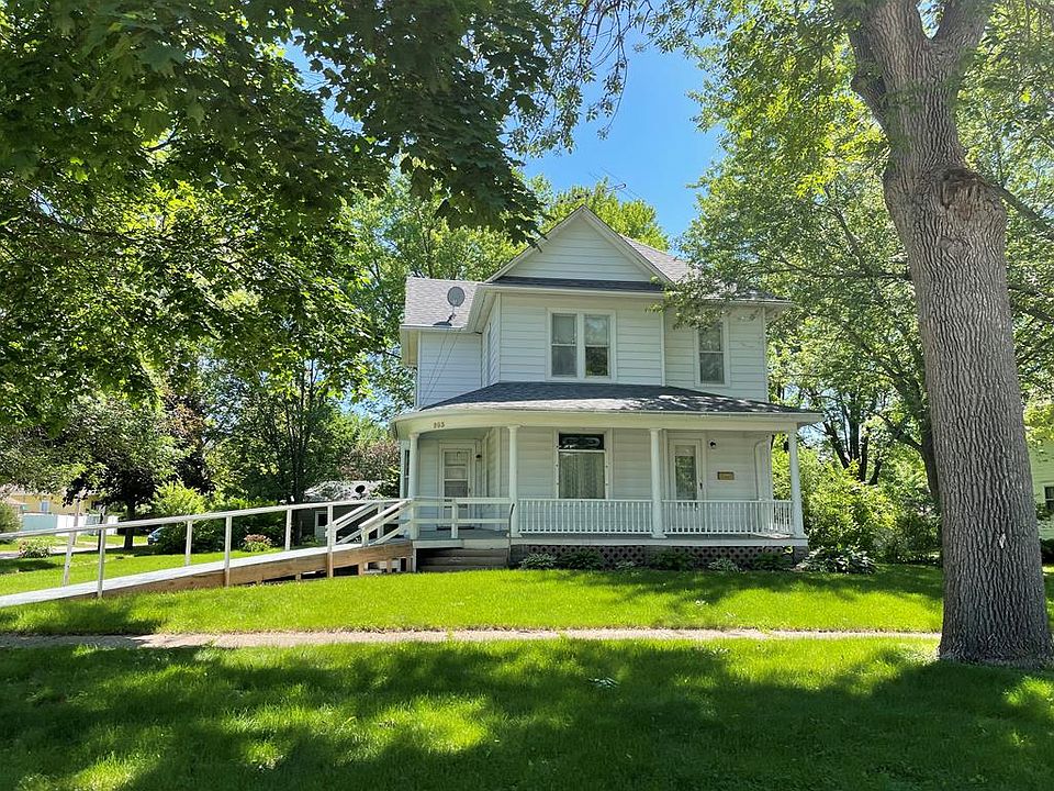 This classic two story home has been well maintained with a brand new boiler for heat, upgraded electrical, and a new main floor bath with laundry. Two stairways lead upstairs to four bedrooms and a full bath. Beautiful parquet wood floors in dining room with built in hutch. Hardwood floors under carpet. Tons of curb appeal with wrap around porch.