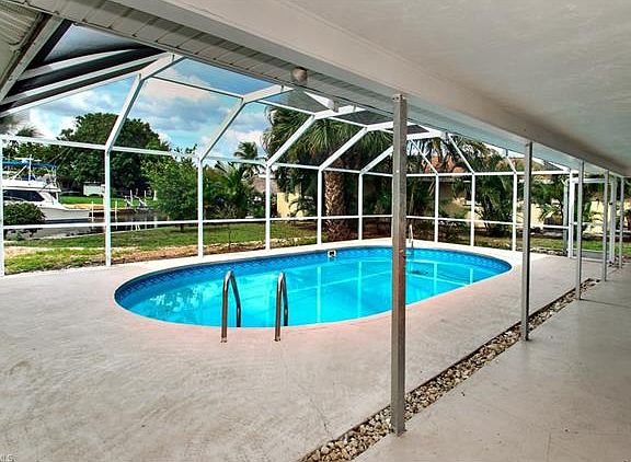 Direct Access Pool Home within walking distance to the Yacht Club Beach and waterfront restaurant on the beach. This home boast a great kitchen, big pass through window to serve your refreshments out to the big lanai. There are 4 big bedrooms and 3 baths, one serves as a pool bath. Your new home sits on an over sized lot, great for your boat. Re-roof and flat roof done 2006, AC 2012,2006 soffit and fascia, vinyl liner replaced 2015, garage door replaced 2004,