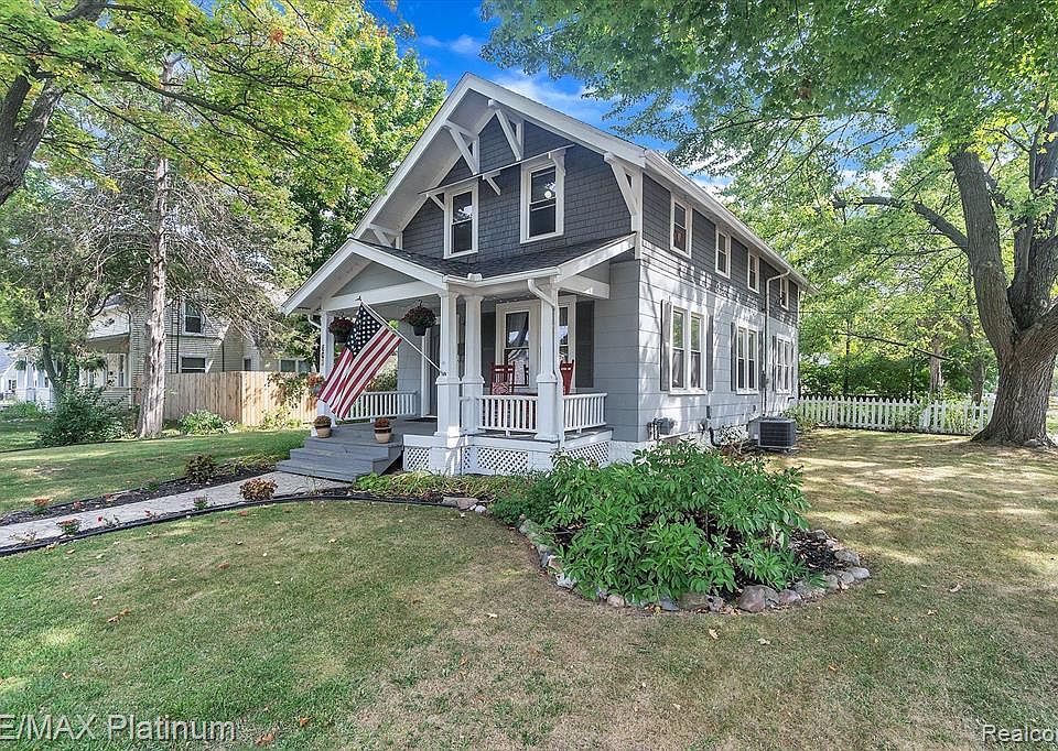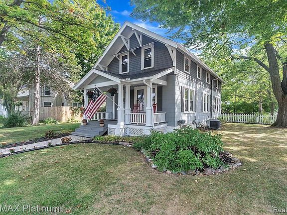 One of the original Craftsman styled homes in sought-after historical section of downtown Howell. Sitting on a nice corner lot this large 4-bedroom home has the original woodwork & many updates: newer kitchen with lots of rustic pine cabinetry, newer counters, backsplash, stainless appliances, laminate flooring, carpeting, adorable upstairs bath with refurbished claw foot tub, updated ceramic bath on 1st. floor, roof, electrical panel, exterior painted and a new roof in 2018, sewer line to street, hi-efficiency HWT, Lg walk-in closet near kitchen could be converted to 1st. floor laundry. Just a short walk to the park/beach to enjoy all sports Thompson Lake.