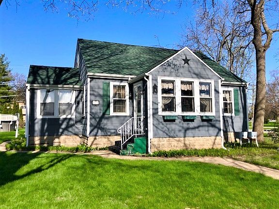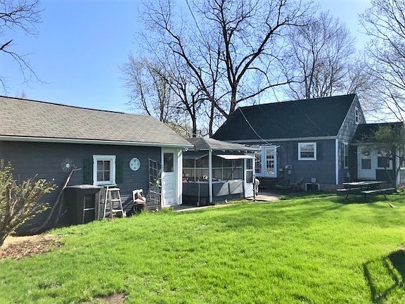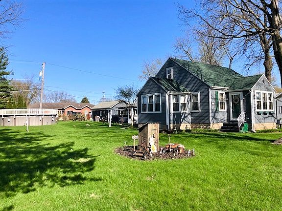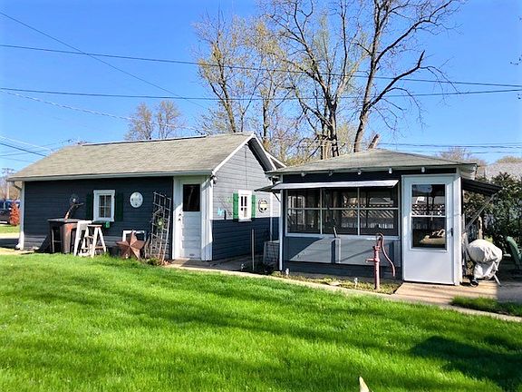 Doll home is conveniently located on 2 lots offering 2 car detached garage with alley access and 3-season room (22x12). The home features natural woodwork, doors and hardwood floors. 2 enclosed porches with knotty pine. Large formal dining room with French doors to the patio area. Updated bath. The upstairs has a large dormer bedroom with 2 closets and new HVAC split unit. Electric update in 2022. Above ground pool. Roof, storm windows and doors (2017).