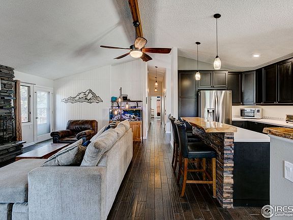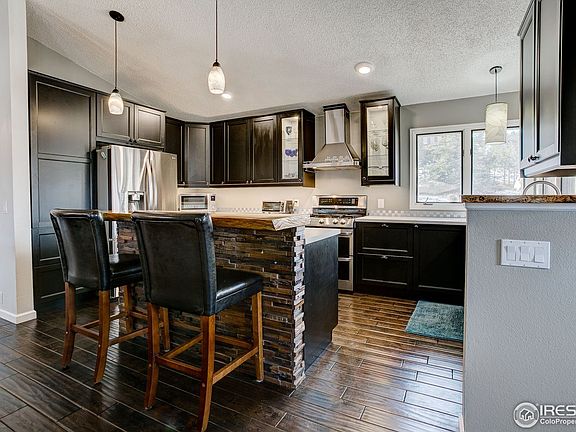 Welcome to this peaceful, beautifully updated 4 bedroom 3 bathroom mountain home with views! Recently remodeled kitchen with open floor plan to entertain. Luxuriously spacious master bed and master bath on main level. Plenty of outdoor deck and balcony space to enjoy this quiet Estes Park area including a built in grill/seating area. Hot tub and vacation rental permit included!