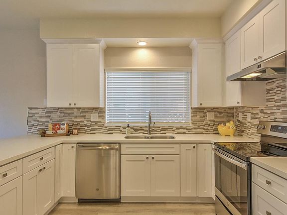 Completely remodeled and ready to move in! Property encompasses four bedrooms 2.5 bathrooms, a 2-story traditional home and its vaulted, sun-drenched living room and warm and inviting ambiance throughout. It features new roof and gutters with a 20-year warranty. This traditional home also features Oceanside Collection Moonstone Waterproof Vinyl floors, recently updated kitchen with Quartz counter tops-full tile back splash-stainless steel sink, NEW GE Electric Range and NEW GE Dishwasher. The master bath and the other bathrooms have been updated as well with custom tile showers-tub-mirrors-Chrome Fixtures-Quartz Vanities and new toilets. Freshly painted inside and out with Kelly-Moore paint and high-quality custom blinds throughout. This property has been re-piped with copper. The residence flows out onto a private patio that is tranquil and has some privacy with matured fruit tree. Perfectly situated close to shopping centers and schools. Nothing compares!