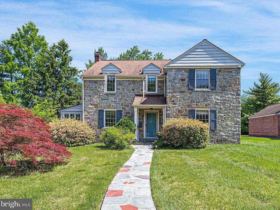 Charming Westover Hills stone and brick classic with extraordinary curb appeal. This home is the perfect combination of original architecture and high end restoration. The current owner has spared no expense in the total renovation of the kitchen, bathrooms and finished basement. Immediately upon entry, you can see the home's original character with elaborate moldings and refinished hardwood floors throughout the entire house. The kitchen was completely renovated in 2016 - including fine cabinetry, quartz countertops, natural stone backsplash and a WOLF gas stove. The half bath on the first floor has been meticulously finished with black marble floors. The Charm continues in the living room with an elegant wood burning fireplace. The living room leads to a spacious porch/office with exterior door and a wall of windows flooding in light. The second floor has 3 large bedrooms and a laundry area. The primary bedroom has His & Her closets and an adjoining stunning primary bath with a heated stone floor. The two additional bedrooms have a beautifully renovated Jack & Jill bathroom. The basement provides additional living and lounge space and another half bath, as well as plenty of storage. The property has a turned detached garage and a wonderful, large lot with mature landscaping. Perfect home in one of Delaware's storied neighborhoods.