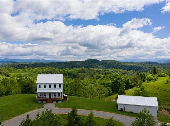 Long range VIEWS! The best views WNC has to offer! Complete ridge top panoramic views with layers of the beautiful Blue Ridge Mountains. Within 30 minutes of Asheville. This home is custom built by RED SHED. Views from every room with tile floors throughout. Excellent farmhouse character with easy maintenance and open floor plan. Barn/garage is 30x40 and offers indoor space for tractor/suvs, animals and hay storage if needed. Access road is a privately maintained road and is seasonal road access to over 400 acres of NC Wildlife Game Lands. This is a rare find with views and large usable acreage. Property is open for stargazing and enjoying the unique sounds of Western North Carolina. Come home and enjoy the open space!