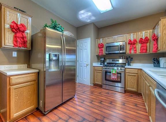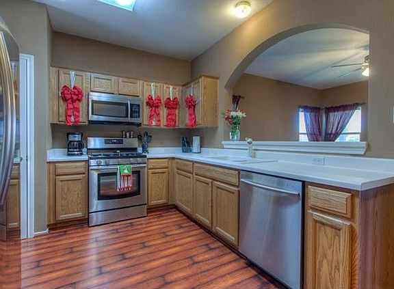 Amazing home in Leander for under 200,000. This home has been well taken care of. Many features including, very nice wood laminate flooring throughout, carpet in the bedrooms, 2 car garage, a huge backyard that includes a storage shed, covered back patio, nice open floor plan, includes appliances except for the washer/dryer, nice size master, and much more! This is a must see!