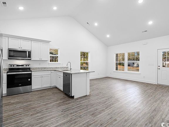 Welcome to this beautiful NEW CONSTRUCTION home minutes from downtown Conway. NO HOA!!!! As you enter in the 3 bedroom 2 bath home, an open floor plan welcomes you from the living area to the kitchen. Luxury Vinyl Plank throughout and recessed LED lighting in the smooth, vaulted ceiling. A kitchen complete with crisp white cabinets, clean granite countertops, and stainless steel appliances.  A master bedroom that includes a walk in closet and a bathroom with a double sink vanity. This home is like a breath of fresh air with the perfectly placed windows that allow natural sunlight. Both front and rear porches boast the beautiful oak trees on the lot. 30 year architectural shingles and a 14 Seer heat pump. Just a short drive to downtown, shopping, and restaurants. Schedule your showing today!