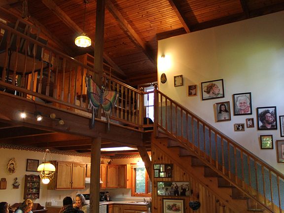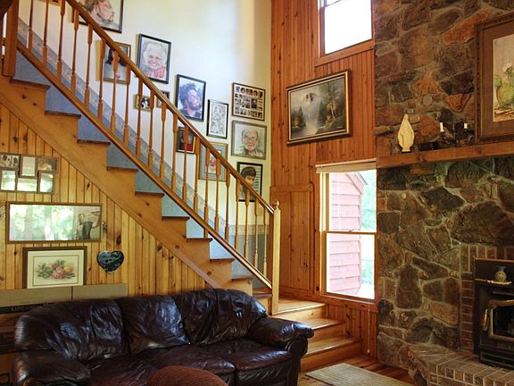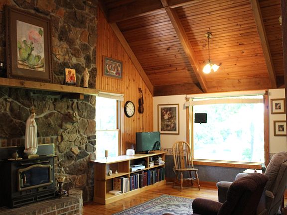 Beautiful Rustic Country Home on a unique wooded property in a quiet and peaceful setting. Remarkable Interior with vaulted wood ceilings, cedar beams and knotty pine floors. Open floor plan with two story great room with a large stone fireplace. Decks on three side with a screened in porch. Loft space and a basement for second living area. Ideal setup for horses, barn with divided stalls, hayloft with electric and water. Plus a Greenhouse.