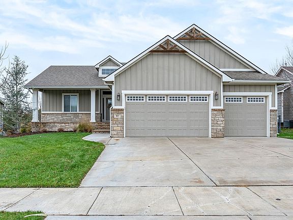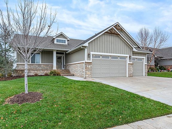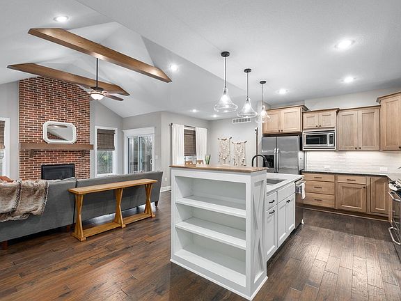 PRIDE OF OWNERSHIP SHOWCASED throughout this COUNTRY HOLLOW HOME! Welcome to 803 Glen Wood where you will feel right at home from the moment you arrive. Walk through the front door and you are greeted with a welcoming entry space, beautiful wood floors, brick accents, wood ceiling beams and open concept living, kitchen and dining layout. The living room is the perfect place to gather around the fireplace for a family movie night and the kitchen is the heart of the home, which is ideal for day-to-day living along with entertaining family and friends. You will adore the kitchen finishes including a large island with eating bar, granite countertops, stainless steel appliances, beautiful cabinetry, walk-in pantry, recessed lighting and hardwood floors. Escape away after a long day in the primary bedroom oasis which features deck access and beautiful accent wall. The primary bathroom will check all the boxes showcasing a walk-in shower, large soaker tub, double vanity with granite countertops, fun backsplash, storage cabinets, separate commode room, tiled floors and newer fixtures. You will appreciate the flow of the primary bedroom suite with connecting bathroom, walk-in closet, laundry room and mud space. Please note the washer and dryer remain with the home! The second and third bedrooms, hall bathroom and storage closets are also located on the main level. This basement will WOW you. Enjoy the large living space, recreation area, wet bar, desk nook, view-out windows, full bathroom, large fourth bedroom, storage room, and more! The wet bar features a refrigerator, two eating bars and an abundance of storage. Make your way to the backyard sanctuary and you will never want to leave. Sip morning coffee on the oversized deck, lounge on the large patio and enjoy the privacy of the wooded lot. The exterior features a welcoming front porch, wrought-iron fence, sprinkler system on irrigation well and three car garage. Additional items worth noting: Large closets in all bedrooms, the garage is insulated and can be heated and cooled via the 2017 mini-split, and the patio was expanded in 2022! Enjoy the neighborhood amenities of Country Hollow including the pool and playground, along with the convenient access to Kellogg, K-96, Kansas Turnpike, gas, groceries, and more! This home has the wants and needs you've been seeking, the only missing feature is YOU!
