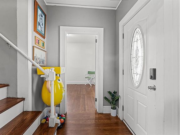 The home is adorned with gleaming hardwood floors throughout the main living areas, creating a warm and inviting atmosphere. The cozy kitchen, complete with a pantry, flows seamlessly into a dining area highlighted by a bay window. A spacious laundry room off the kitchen doubles as a practical mudroom. Step outside to enjoy a beautiful, level backyard surrounded by mature pecan trees, perfect for relaxation or play. The large lot includes a refreshing pool and pet-friendly fencing custom made for cats with climb protection, ensuring safety for furry friends. The back deck, covered front porch, and storage building add functionality and charm, while a rear alley provides dual access for convenience.