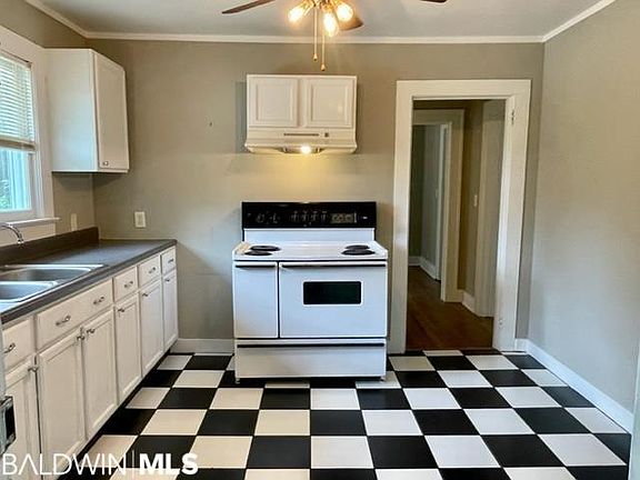 CHARMING COTTAGE on Main Street Atmore! This 2BR/1BA features a fabulous front porch with swing, spacious room sizes, hardwood floors, checkerboard kitchen tile, high ceilings, new split unit AC, new ceiling fans, lights, barn door, new bathroom vanity, stackable washer and dryer that convey with property. The large shop/two car garage still has plenty of space for a workshop and a front porch for barbecuing! The shop is AS IS. The property has mature trees and a lot of azaleas that provide shade and privacy. It is centrally located to parks, gyms, boutiques, specialty shops, grocery store, churches and restaurants. All accessible by sidewalks! Cash or conventional loan only. Call your favorite Realtor and schedule your showing today!