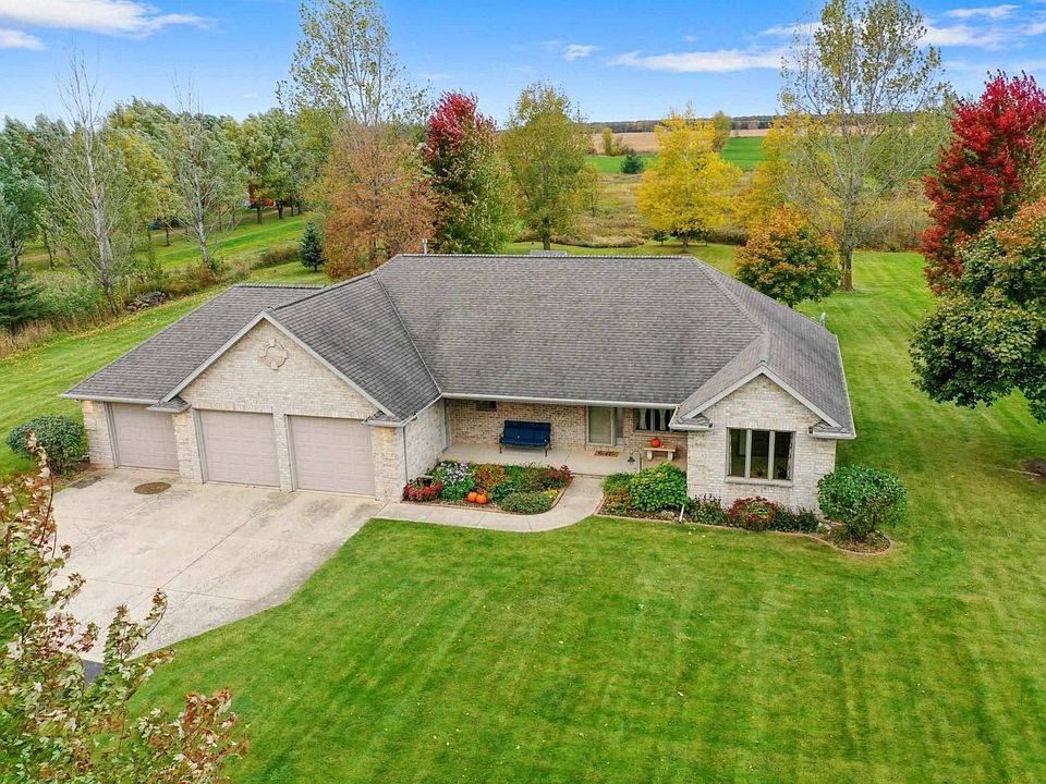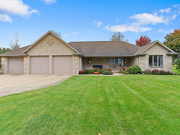 If you LOVE a great sunset this house is for you! A little slice of country on 3.05 acre lot (per assessor), ALL BRICK ranch home with playhouse & extra outbuilding (for the hobbyist or animal lover) . Great room w/ gas log fireplace, cathedral ceiling & transom windows create great daylight and an airy feel, open concept to kitchen/dining w/doors to patio, split design home offers laundry right off master ensuite, kitchen has large island & great work space, basement plumbed for future bath & offers great storage. Other great features you are sure to love; 27x06 Covered front porch, 12x12 patio, paver walk, 3 car, heated garage w/workshop space, 07x07 playhouse & 12x12 shed (previously used for goats), apple tree's, pear trees, and more. Showings begin 10/20/22.