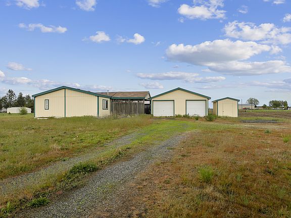 Acreage close to town but with a country feel! Conveniently located near FAFB and only minutes from the I90 and future Amazon building, this 3 bdrm home offers a nice floor plan including spacious family room, formal dining room/office and master suite. Convenient layout for roommates with master on one side and guest rooms on the other side. Features almost 5 acres, partially fenced, with over sized 2 car garage/shop with 200 amp, heated and insulated. All appliances stay! Bring the horses & chickens!