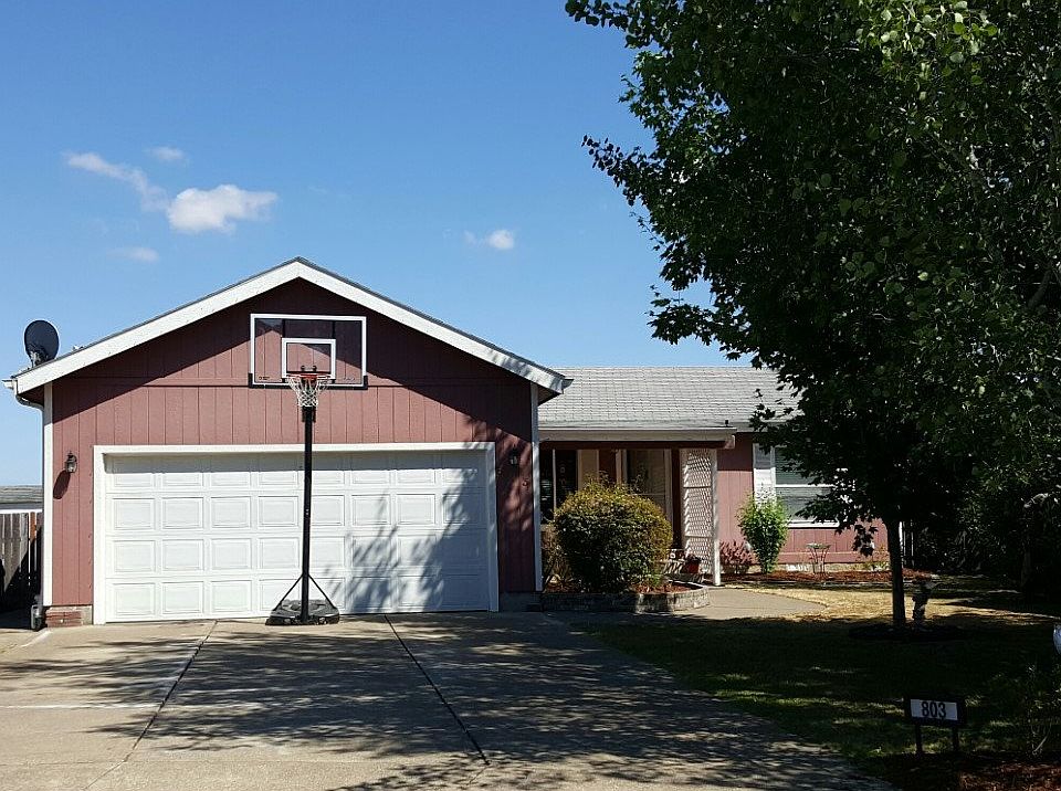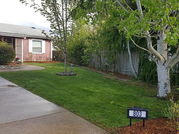 Affordable and adorable! 3 bedroom, 2 bath dbl wide home on a cul-de-sac, close to schools. 2 car garage, great landscaping, large fenced back yard, covered deck and patio, 2 tool/garden sheds. Inside has new laminate flooring in the living room, built-in hutch, island and pantry in the kitchen, slider in the dining room to sit and look at the sunrise from your deck, vaults, kitchen appliances stay, large master and air conditioning!