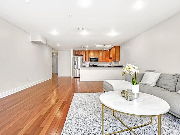 Welcome to this beautiful 2 bedroom condo at Vista Commons a boutique building constructed in 2006. The open layout includes a big kitchen with new backsplash granite countertops and stainless steel appliances that flows into a huge dining and living room space. Located on the other end of the unit is the master bedroom with a walk-in closet a nice size 2nd bedroom and bathroom. Gleaming Hardwood floors throughout central heat/AC all controlled by the the nest system washer and dryer within the unit and a deeded garage parking space complete this perfect home. This well-maintained elevator building is located a block away from multiple bus lines directly to Manhattan and various towns in New Jersey. Easy access to the Hudson Bergen light-rail to Hoboken and Jersey City. Walking distance to shopping and restaurants galore!