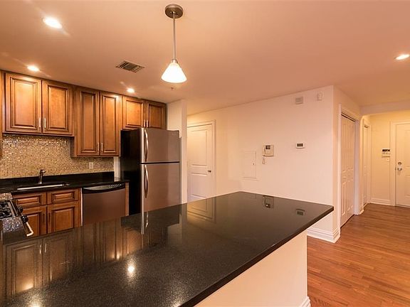 Beautiful 2 Bed/ 1 Bath condominium with balcony centrally located in Union City. The unit includes an open kitchen and living room area that is filled with natural light. The kitchen has all stainless steel appliances, black absolute granite counter tops, and a breakfast bar creating an inviting open layout. There are two large bedrooms with spacious closet space. There are pristine cherry hardwood floors throughout, as well as a washer/dryer and central air/heat. The unit is also wired for an alarm system with motion detectors. The building has an elevator and includes secure covered garage parking for 1 car allowing for an easy commute. It is conveniently located near Route 495, transportation to NYC, restaurants, shops, and schools. This won't last long, schedule a showing today!
