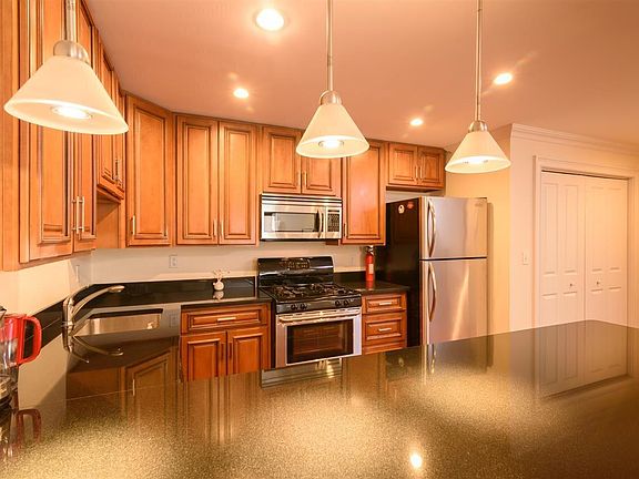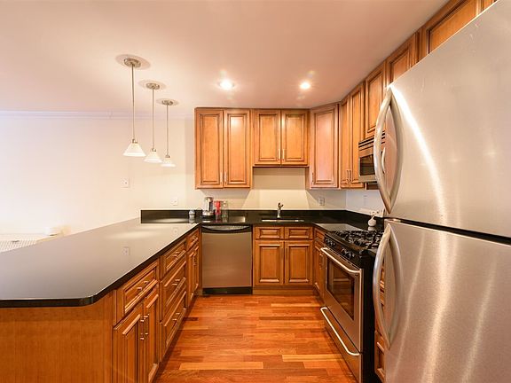Stunning 1 Bed/ 1 Bath condominium with balcony centrally located in Union City! The unit includes an open kitchen and living room area that is filled with natural light. The kitchen has all stainless steel appliances, black absolute granite counter tops, and a breakfast bar creating an inviting open layout. There are pristine cherry hardwood floors throughout, as well as a washer/dryer, central A/C and forced hot air. The unit is also wired for an alarm system with motion detectors. The building has an elevator and includes secure covered garage parking for TWO cars (1 tandem parking spot) allowing for an easy commute. It is conveniently located near Route 495, transportation to NYC, restaurants, shops, and schools. This wont last long, schedule a showing today!