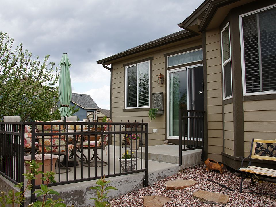 Beautiful ranch boasts 4 bedrooms, 3 baths, hardwood floors, double sided gas fireplace, bright open floor plan, large eat-in kitchen w/ quartz counters and kitchen island. Finished basement includes a commodious rec room and bathroom. Corner lot location with low maintenance landscaping, garden beds, back and front porches for maximum outdoor enjoyment. Close to Pelican Marsh Open Space and easy access for your commute with convenient access to I-25. Low HOA dues. Home warranty provided!