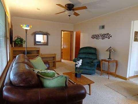 Cozy home that's conveniently located half of a block from the Aquatic Center and park. 2 bedrooms, 1 bath and a detached 1.5 car garage. Cute eat in kitchen, large family room and main floor laundry. No basement, no steps. Large back yard and private patio are a plus!
