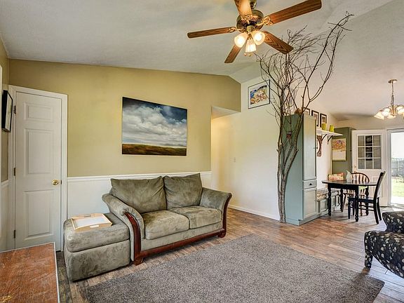 Amazing view from the porch of this split bedroom floor plan w/WIC's in 2 bedrooms. New vanity in master bath, updated kitchen-new counter tops, farm sink, & refinished cabinets. Beautifully appointed nook area, tile throughout, patio next to porch, storm doors, large garage, large fenced backyard w/14 fruit trees, 6 shade trees, & 25 rose bushes.