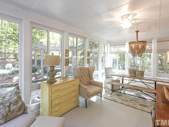 All brick beautiful turn-key home in sought after Lochmere.Huge downstairs mstr suite w/"Universal design" bathroom.2nd mstr up w/ sitting area.Remodeled kitchen with custom cabinets,quartz ctrtops,SS app,gas range,custom 9 1/2 ft reclaimed wood island,walk-in pantry.Custom barn door in laundry area.All hdwds first floor,plant.shutters,3 season porch,extensive landscape w/Pergola and night lighting,fenced backyd. Walking trails,pool,tennis.Walk to coffee shop,Whole Foods,etc.Great Multi-Generational home.