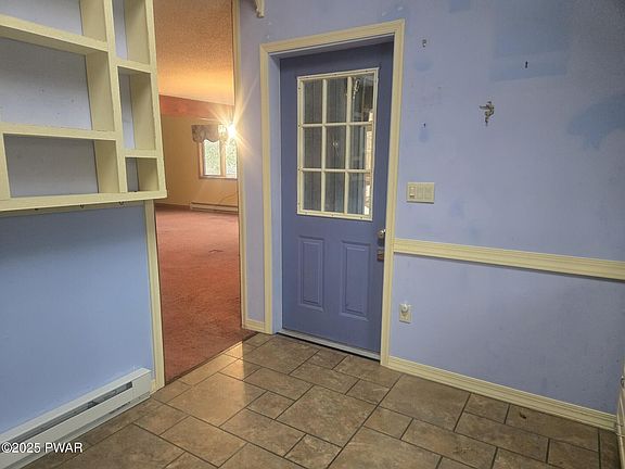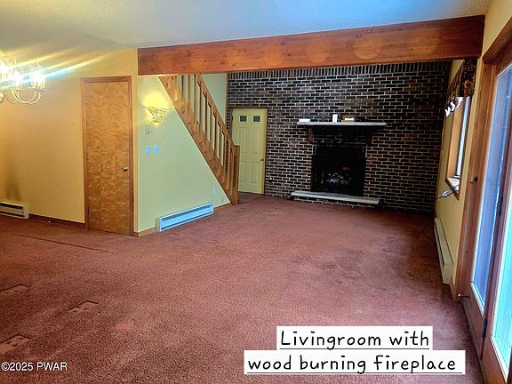 Located on a peaceful cul-de-sac in Tanglwood North this country chalet is ready for new owners to update and start enjoying. Inside on the first floor you will find open area with dining area the bright living room with a brick wall that has a propane fireplace, kitchen with a skylight letting the sunshine in and walk out to the screen porpch with a view of the wooded backyard. On this floor there is also one bedroom and a bath with laundry closet. At the top of the stairs there is a loft for extra living space, 2 large bedrooms and a full bath or an office or gameroom. One car garage, paved driveway and a shed for extra convenience. Sit out on the oversized front deck and enjoy all wildlife, peace and quiet that surrounds this property. Bring a little imagination and see the potential this home has to personalize and make it your home in The Poconos. Short walk to community clubhouse and lake, minutes to state gamelands and Lake Wallenpaupack.