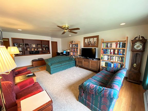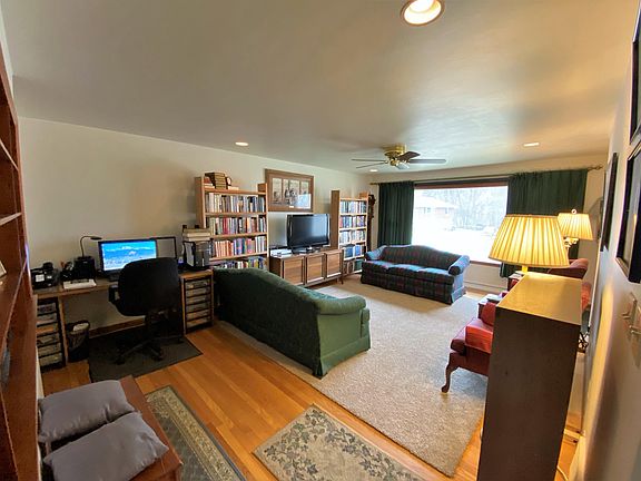 Brick exterior ranch with exposed LL offers plenty of additional living space, two additional bedrooms down with a full bath, kitchenette area and family room with wood burner/fireplace for additional heat. Fully updated main bath with double sinks and ceramic tile floor. Third bedroom currently set up as great home office space. Hardwood floors abound upstairs, lots of natural light in this home and very large formal dining off kitchen. Updated roof, hi-eff furnace and central AC, 150AMP main panel. Fenced yard, large rear deck and unique backyard outdoor entertaining option with rear overhead door, or motorcycle parking in tandem side of garage, effectively making it nearly 3 car storage garage. Additional concrete parking area, walk to schools sand close to shopping on Sunset Dr.