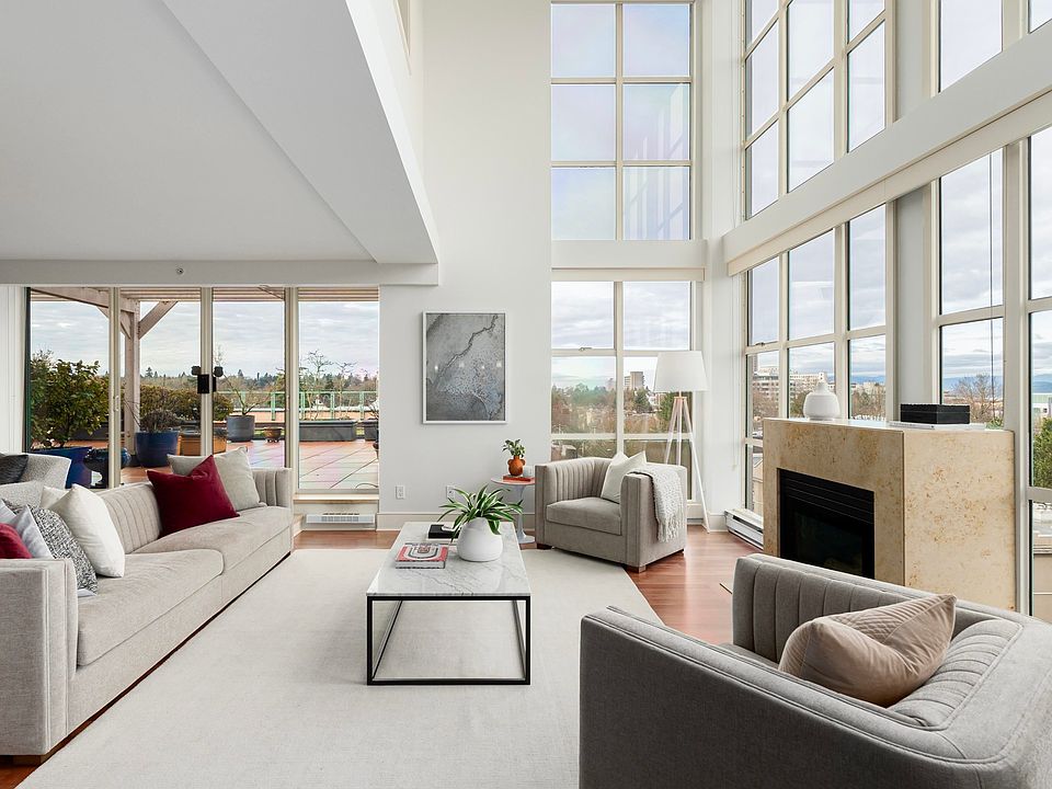 Step into this rare penthouse offering and prepare to be wowed! This 3-bed, 2.5 bath suite exudes luxury on two levels. A beautiful renovation with stunning hardwood floors and gorgeous millwork throughout. A custom kitchen by Redl features high end appliances. Spectacular views of the City, North Shore mountains and English Bay. An expansive private patio/deck captures the western afternoon sun and showcases glorious evening sunsets. Nearly 3000 sqft of space and a private in-suite elevator help to make this home a true oasis in the heart of Cambie Village. Easy access to shopping, dining and transit, close to VGH, super convenient to YVR and a hop, skip and jump to downtown Vancouver. This truly is a special home that you will not want to miss. Sorry - no pets permitted.