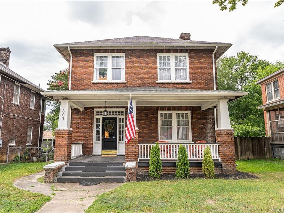 NEWLY REDUCED! Gorgeous 2 story historic brick home minutes to the City. Tastefully renovated to it's original historic beauty, offers a lovely mesh of modern style along with historic charm. This 3 bedroom + sleeper porch, 1.5 bath home features original hardwood floors, solid wood doors, high ceilings and 3 fireplaces (currently not in use). Central AC (2015), new gas furnace and new hot water heater installed in 2016. Half bath on 1st floor was added at the same time and could be converted into a full bath. Upstairs bath was renovated in 2015. New kitchen with white cabinets, tile floors, butcher block counter-tops and SS appliances. Laundry area off the kitchen with stackable washer and dryer. Lots of natural light and quality trim through-out. Relax on your back deck overlooking a nice size fenced back yard with mature trees. Storage shed could be converted into a 1 car garage. Located just minutes to downtown and I-64 in an up and coming neighborhood, with hot spots like the Fuzzy Cactus, Tabol, and Black Hand coffee, etc. all within walking distance. Neighborhood pool around the corner and Arthur Ashe tennis courts a block away. Sold AS-IS.