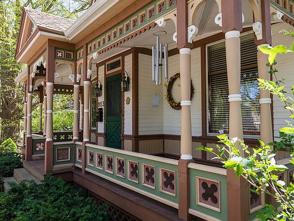 This 130-year-old Victorian is situated among Champaign's historic mansions on more than 1/2 acre lot that is a block deep. A large front porch with Victorian ornamentation welcomes visitors. Inside, the 1st floor features huge rooms, tall ceilings & original oak floors. The current owners completely remodeled the kitchen with maple cabinets, custom concrete counters, stainless appliances, and new-in-2019 luxury vinyl plank flooring. There is also a walk-in pantry. The 2nd floor offers 3 bedrooms with a shared hall bath and a private master suite, featuring soaring ceilings, tremendous views & natural light, a private loft study, walk-in closet, & full bath with separate walk-in shower & whirlpool tub. Other highlights include a modern hot water heating system, 2 central a/c systems, & water heater in 2014. Oversize detached garage has one fully insulated bay & 100-amp sub-panel--great for workshop use! **Back half of roof new in 2019.** See HD photo gallery & 3D virtual tour!