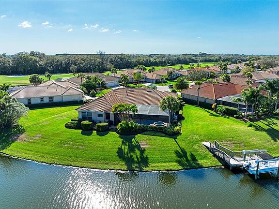 This exquisite 4/3 plus office executive home in Waterlefe Golf and River Club is a rare listing on boatable water in the community. With a private boat dock and lift, you can enjoy a happy hour cruise through the neighborhood or fish for largemouth bass. Youre just minutes away from the Manatee River as you go through the community boat lift, and less than minutes to the Gulf of Mexico. Waterlefe is a gated golf course community and ranked as one of the top golf courses in Florida. After a round of golf on the championship course, enjoy a delicious meal in the Grille Room. Residents also frequent the River Club, overlooking the Manatee River, for dining and social activities. Waterlefe has a large community pool and tiki bar, 2 marinas, a kayak storage area, and a fitness center. Theres something for everyone. This home is situated at the end of a private cul-de-sac. Enter through the high and elegant doors into the living room and dining room. The living room has beautiful large sliders with a view of the pool and lanai. Off the living room through French doors, youll find the home office. The dining room has tray ceilings, large windows, and a beautiful lighted pass through. The kitchen has been remodeled with new tile floors, cabinets, countertops, dishwasher, double oven, and microwave. The eat-in kitchen area is adorned by an extra-large aquarium window that highlights the gorgeous lanai. This open concept home brings you into the large family room. Enter the master bedroom retreat with an oversized sitting area and French doors leading out to the lanai. The high tray ceiling makes this room spectacular. The bathroom is inviting with a large garden tub and walk-in shower. Double sinks, granite counter tops, and many windows make for a bright and elegant bathroom. The two bedrooms on the opposite side of the house make this a great split floorplan home. The fourth bedroom overlooks the water and has a private bathroom that leads onto the lanai. The jewel of the home is the outside backdrop of the water and your private boat dock. The pool and spa have been updated with pebble tech finishing and new tiles. The new ClearView pool cage gives you unobstructed panoramic views of the water. The outdoor kitchen and large lanai make this the perfect home for entertaining. Outside the lanai youll find another private patio to enjoy.