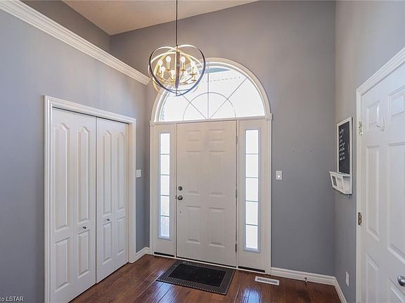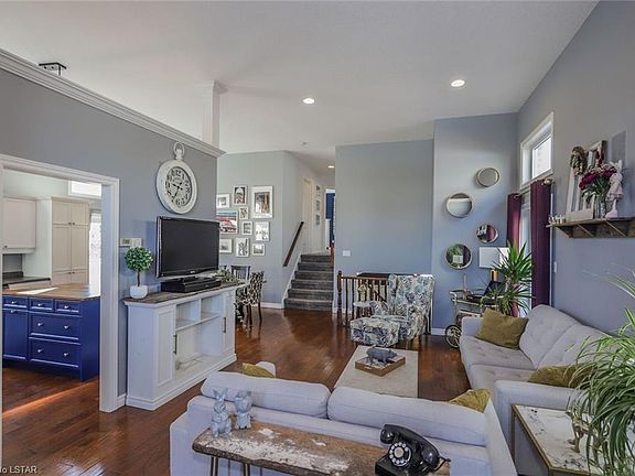 Located on quiet crescent of single family homes in a north west London newer neighbourhood close to shopping mall, parkland, public transportation, schools, community centre with Olympic pool, major transportation, hospital and Western University. Situated on fully fenced lot that has had landscapping added to provide the ultimate privacy as well as a large patio for summer fun, a shed for your yard tools plus room for the kids and family pet. You will love the attractive brick front exterior with front porch and professional landscaped look. Convenient double drive and attached garage! This 4 level backsplit has been finished on all 4 levels so its perfect for the space lover or growing family. You will be impressed with the soaring ceilings and open concept as you walk in the front door! The great room enjoys hardwood floors and opens into the dining area and updated white kitchen with an island, pantry, pots and pan drawer, under counter lighting and decorative glass corner cabinet. Do not miss all the sunny windows with attractive transoms. On the 2nd level there are 3 bedrooms, with the master having a cheater ensuite and good closet space. Soak in your corner whirlpool tub after a long work day. The 3rd level offers a wonderful space to enjoy family times with large look out windows, a 4th bedroom and handy full bath. This level has warm newer carpet as well, its wired for a sound system. This level is also where your laundry room is with handy complete with a laundry sink. Even the 4th level is finished with a games, recreation room with easy clean laminate floors, cold room and storage room. Some upgrades include fresh air exchanger, pot lights, insulated garage, Cat 5 wiring, Family Room wired for sound and solar panels. This home shows well, is immaculate, move in ready and very well decorated so all you need to do is unpack and of course enjoy with family and friends.