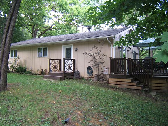 Move in ready Ranch featuring open concept living room - dining area - kitchen with 2 sets of patio doors to a huge entertaining size deck, 3 bedrooms with a master suite with private remodeled bathroom with a walk in shower, 2nd full bath and utility room all sit on a spacious park-like wooded lot with room to build a garage, patio and ''She Shed'' with porch. All this just around the corner to the park and beach. (Basement is a 4' crawl space for storage).