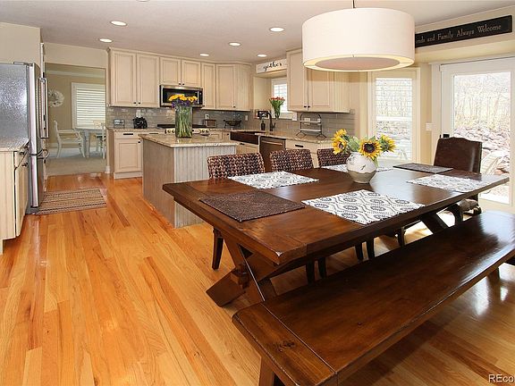 Prepare to fall in love with this gorgeous custom Peregrine home! Perfectly situated on a quiet cul de sac with amazing views of the mountains and city. You will be impressed by the high quality upgrades such as Norman shutters, completely remodeled kitchen with high end stainless steel appliances, slab granite and copper farmhouse sink, newer windows, newer exterior paint, Nest thermostat, custom baseboard, trim and door casements, remote controlled fireplaces, hardwood floors and more. Choose to either relax on the front covered deck and enjoy the city views or on the back patio which offers great privacy and mountain views. Admire Blodgett Peak right outside your back door! Located on almost an 1/2 acre lot and close to hiking trails, parks, shopping and D20 schools. Low maintenance tile roof, upgraded door hardware, upgraded lighting and a new 75 gallon water heater are a few of the extra features. Pride in ownership shows from the time you walk in the front door. Welcome home!