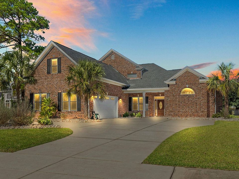 Welcome to your dream home, where modern luxury meets serene LAKEFRONT tranquility! This meticulously detailed 5500 square foot CUSTOM BUILT HOME is located on .59 acre waterfront lot in the desirable Plantation Lakes community in Carolina Forest. The open floor plan with 5 bedrooms, 4.5 baths, along with an office, dining room, heated and cooled lanai with EZE Breeze windows, and a gorgeous large WATERFRONT LOT allows plenty of space to add a pool to your outdoor space. This home is truly one of a kind! This home is thoughtfully designed with craftsmanship to offer unparalleled comfort and style with crown molding, elegant millwork, solid wood cabinets in every bathroom along with exceptional custom TILED SHOWERS. The home’s main floor flows beautifully, starting with a formal dining room perfect for entertaining. The kitchen is a chef’s paradise, complete with granite countertops, a commercial Thermador GAS STOVE with vented hood, stainless steel appliances, soft-close drawers and hardwood white cabinets with under and above lighting, along with a built-in pantry. The working island, breakfast bar with an eat-in dining area allows for your family to enjoy meals together with plenty of space. Adjacent to the kitchen, the living room shines with a magnificent coffered ceiling, custom built-ins, surrounded by a wall of large windows showcasing breathtaking lake views. A climate-controlled all season room with EZE-breeze windows extends your living space and offers the perfect spot to unwind year-round while soaking in the peaceful water views. The primary suite is conveniently located on the first floor with a lighted double tray ceiling, new plush carpet, and a large walk-in closet with the convenience of its own thermostat, while the en-suite bath feels like your personal spa! It is featuring a freestanding soaking tub, a separate rainfall shower with dual shower heads and enjoy your endless supply of hot water with your tankless rinnai. The first floor of this property provides a split floor plan with an additional bedroom and full bathroom, perfect for extended family or guests. On the second level, you will find a separate living area, the third and fourth bedrooms with en-suites, a fifth bedroom/bonus room with plenty of closet space and a pull-down attic adds even more storage. Outdoor living is unmatched in this beautifully landscaped yard with attention to detail, irrigation and new hardscaping making this a pristine environment! Soak up the lake views on your spacious patio perfect for grilling, relaxing and entertaining. The heated and cooled OVERSIZED 2-car garage with epoxy flooring has a new mini-split heat pump for a customized climate control environment including overhead storage racks making this the perfect man cave! Taexx System in wall pest control was completed during construction of the home. Constructed with high impact windows, 2x6 exterior walls, exterior r-19 insulation, ceiling insulated to r-38 all interior walls and between first and second floor as well as an upgraded lumber package. Plantation Lakes boast 1st class amenities which includes a 15 acre lake, sidewalks, street lights, a clubhouse, fitness room, multiple swimming pools, gazebo, playground, lakeside picnic area, lighted tennis and basketball courts. You can escape to the beach and golfing along with all of the other activities that Myrtle Beach has to offer. Don’t miss this rare opportunity to own a lakefront haven with all the amenities you could ask for! Be sure to check out the 3-D tour!