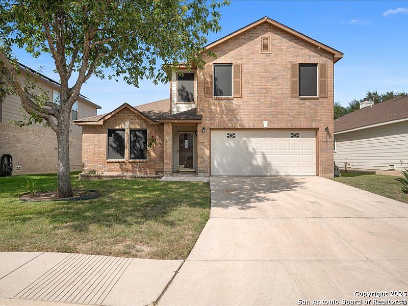Spacious 4 bedroom home with master suite downstairs for privacy. Alarm system with wired cameras and ring door bell, vinyl flooring, private office, custom black out screens, custom blinds, front and back storm doors, custom 10x12 storage shed, barbecue pit, custom landscaping with circular lounge chair and canopy that conveys, spacious loft with ceiling fan and surround sound speakers, NISD schools. Neighborhood has playground, and sport courts. Near shopping centers, main highways and Dub Farris Stadium.