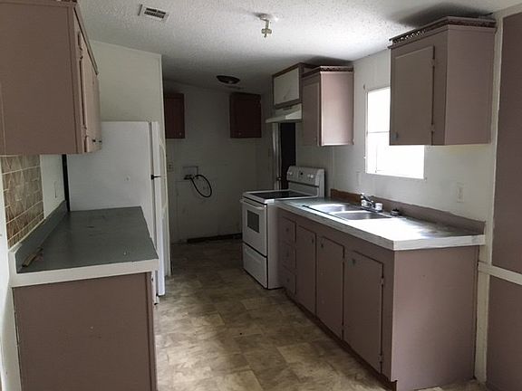 FANNING SPRINGS GREAT BARGAIN ~ 3/2 doublewide mobile home on a whopping .7 acre gorgeous lot w/new metal roof, wooded around the perimeter for privacy and fenced on 2 sides. Cathedral ceiling & open split floor plan makes this 960 sf home look much bigger. Needs some TLC mostly cosmetic in nature like paint, cleanup, & flooring, but otherwise appears structurally sound. Features include pedestal sinks in both bathrooms, master bath garden tub w/built-in linen closet, indoor laundry off of kitchen w/pantry, wood cabinets, smoke detectors & ceiling fans. HVAC only 3 years old, 7 yr warranty left. Long driveway to the back of property provides plenty of room to park your vehicles. Seller financing considered with $20k down.