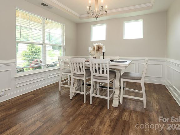 Great open and spacious floor plan on .46 acre lot with privacy fence in back. Spacious dining room with trey ceiling, wainscot/molding decor. Granite counter tops in large kitchen with good sized island, great for morning coffee. Large pantry, Kitchen open to large great room. Home has been meticulously maintained, all of the faucets, and most light fixtures were replaced in 2021. Covered porch was added 2024 and additional patio area to allow more area for guest, etc. Home has 5 bedrooms and 4 full bathrooms. Bedroom/bonus room on the third floor, great for game night. 3 car garage. Convenient area to I485, restaurants, hospital and more. * Refrigerator in kitchen does remain, but the refrigerator in garage will not remain with home.***