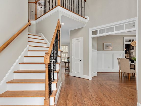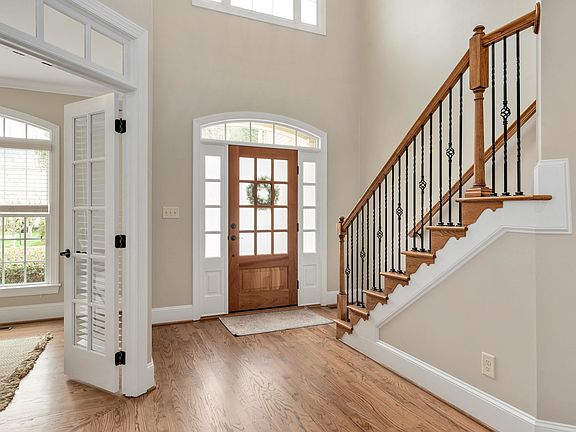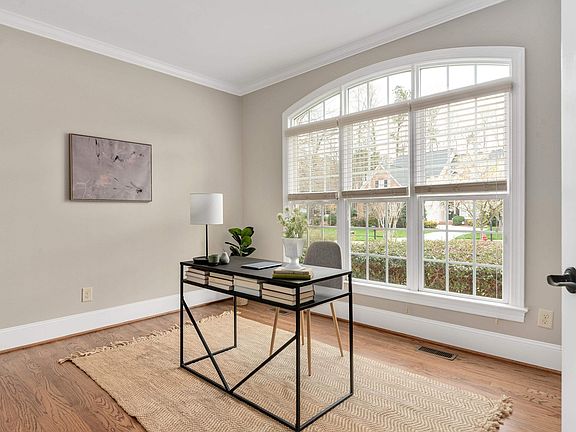 Stunning home. Newly refinished hardwoods, new carpet, new paint. Spacious floor plan, first floor bedroom and french door finished office. Lots of flex space and open plan for entertaining and WFH. Primary bedroom is an oasis - double doors lead to luxury spa bath and large wic closets. Wainscoting, transom windows. Wired for security system, Front and back irrigation systems. Open, light filled foyer with iron spindle stairs. On top of that a great bonus room! Wonderful and very private newly fenced yard. Sit on your back deck and watch the sunset. Backs up to Army Corps of Engineers land. Easy access to Southpoint restaurants, shops, Duke, UNC and RTP. Deadline set: Monday at 9am. Multiple offers received. In the middle of everything but quiet, peaceful and private.