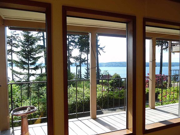 180 degree unobstructed views of the Puget Sound, Olympic Mountains, Whidbey Island. This elegant and beautifully kept home features a master and guest suite, chef's kitchen with Sub Zero Refrigerator, open great room with wood burning fireplace, laundry room, covered patio & deck where you can watch ships come in, eagles and amazing sunsets. One car garage. Viewpoint Community is fully gated (security access). Amenities include; pool, club house, athletic court and RV parking, trails. Breathtaking sweeping views of Puget Sound, Olympic Mountains and nature from this fully updated level entry corner unit luxury condo. Private large deck off dining, patio w/grass off both beds, plenty of outdoor spaces. Newer stainless appliances, slab granite counters and baths, Spacious and bright sunny rooms, views from almost every room. Sound breeze, eagles soar, spectacular home on manicured grounds w/paths, mature landscaping. Rare opportunity, well maintained truly special home.