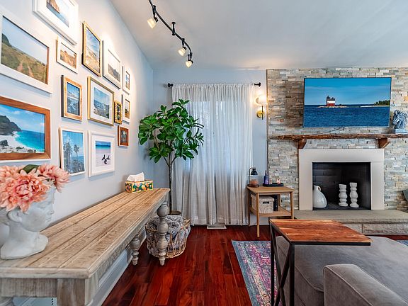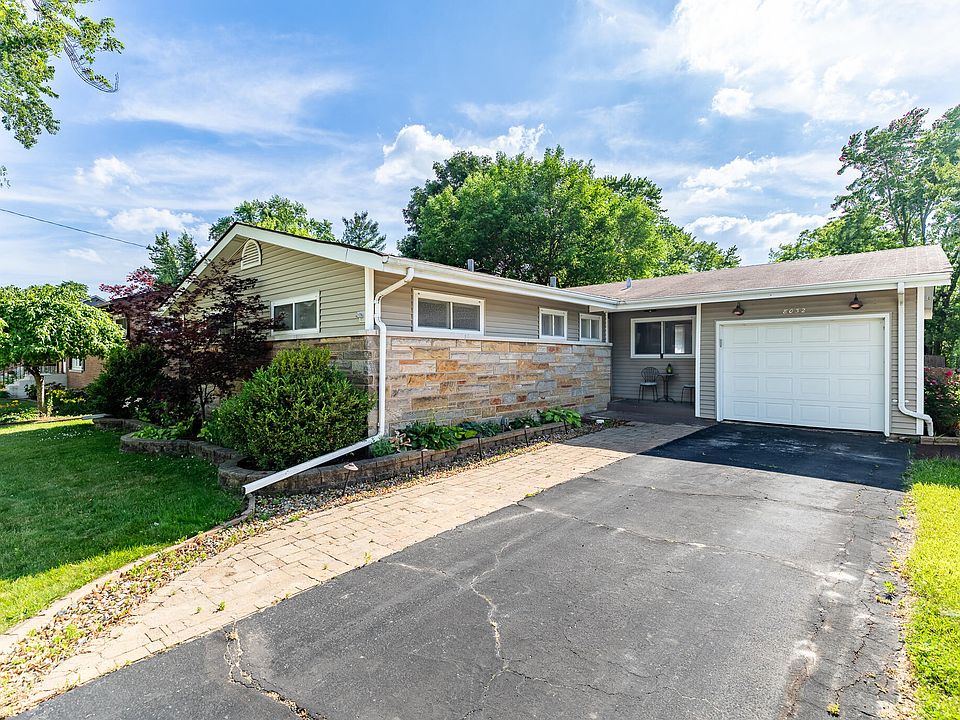 Come tour this wonderful 3 bedroom, 1 1/2 bath ranch home in Munster IN. The bright and airy open living and dining rooms feature a beautiful fireplace, perfect for cozy evenings. A stunning wall of floor-to-ceiling windows provide natural light and views of the inviting patio and landscaped backyard. All kitchen appliances (refrigerator, range, microwave, dishwasher), plus the washer and dryer, are included. You'll find ample storage room in the attached one-car garage and backyard shed. The basement is a valuable extension of the home, featuring a flexible bonus room (currently utilized as workout area), a dedicated utility room housing the washer, dryer, and a sump pump with battery backup for peace of mind, and additional storage space to keep everything organized.