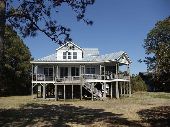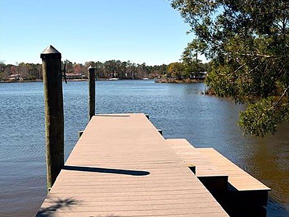 This delightful cottage is tucked away in the reserved Teaches Cove neighborhood and is situated on Greens Creek with private dock in-place. Pier draws a range of three and a half to four feet of water depth with attached wooden platforms for smaller vessels.. perfect docking for both your boat and kayaks (2 kayaks provided)! Open floor plan with the main living area on the lower level. Heart pine floors throughout the lower level. Kitchen is complete with recessed lighting along with a built-in island providing additional counter top space and bar seating. Installed gas log fireplace makes for a cozy living room setting. Living room offers convenient access to the home's wrap-around porch through full-length glass French doors that boast creek views and offer an abundance of natural light. A portion of porch is screened-in one side while back is open yet covered. Additional feature includes is its double carport. Vacation Rental - Rents daily (2 min), weekly or monthly (rates change per IN (April 1st to Oct. 31st) and OUT OF Nov 1st to March 31st) season)