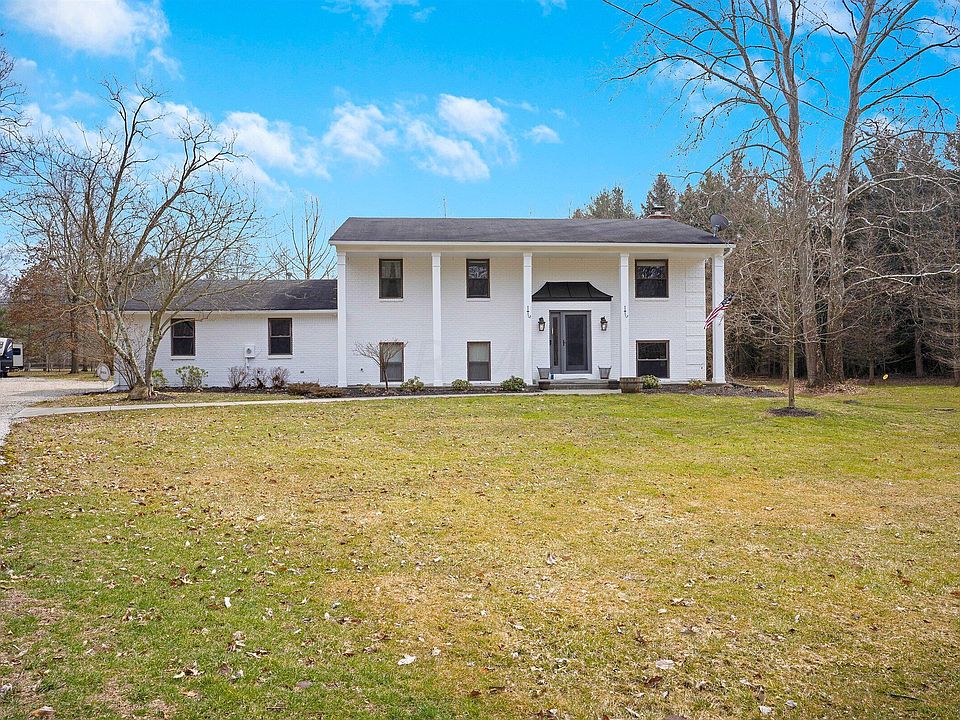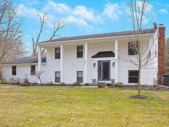 New Albany home nestled on nearly 3 acres. This 4 bed 3 bath home is full of beautiful updates including the kitchen, baths and an added on living space. Tucked away and surrounded by tons of trees, this home is private and offers great outdoor living space with a partially covered patio. Large outbuilding 40 x 25 with water. Additional updates include HVAC, New Well, Rear Patio and Exterior Paint. New Albany-Plain Local School District. Showings start Saturday 3/13.