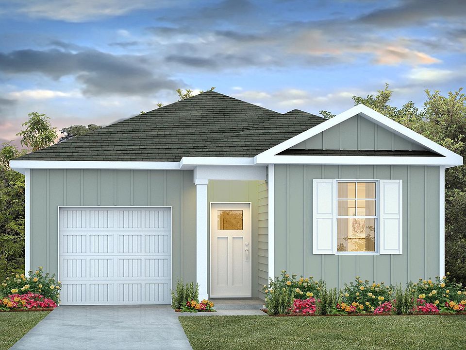 The DEVON is a beautifully designed single-story home offering the perfect blend of comfort and convenience. With 3 spacious bedrooms and 2 full bathrooms, this open. The heart of the home is the open concept living and kitchen areas, and seamless access to the patio, perfect for entertaining or quiet evenings at home. The modern kitchen features a kitchen island that overlooks the living space. The primary bedroom includes a walk-in closet and an en-suite bathroom for your private retreat. Additional bedrooms share access to the second full bathroom, located conveniently near the foyer for the guests.Nestled in a quiet Lowcountry setting, The Oaks at Center Station offers a peaceful escape just minutes from everything Charleston has to offer. Located off SC-165, you'll enjoy quick access to Johns Island (15 minutes), West Ashley (20 minutes), downtown Charleston (30 minutes), and the Airport/Joint Base (35 minutes). On beach days, it is only a short drive to Edisto and right across the street you'll find the Hollywood Town Hall, the library, that also offers a public recreational pool. All new homes will include D.R. Horton's Home is Connected® package, an industry leading suite of smart home products that keeps homeowners connected with the people and place they value the most. This technology allows homeowners to monitor and control their home from the couch or across the globe. Products include touchscreen interface, video doorbell, front door light, z-wave t-stat, keyless door lock all controlled by smartphone app with voice! *Square footage dimensions are approximate. *The photos you see here are for illustration purposes only, interior, and exterior features, options, colors and selections will differ. Please reach out to sales agent for options.