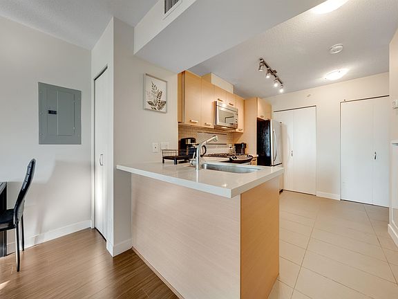 OPEN SAT Sept 27 12:00-1:00 PM Discover 'Paloma 2', nestled centrally in Downtown Richmond. This 405-square-foot studio suite offers a seamless blend of comfort and accessibility, featuring central air conditioning, stainless steel appliances, a gas stove, marble countertop, 9-foot ceilings, laminate flooring and a brand-new smart Japanese toilet. Private parking and storage are included. Enjoy the convenience of concierge service and indulge in exceptional amenities including an exercise center, theater, and sauna/steam room. Richmond Centre mall is across the street, Brighouse Skytrain station is 2 minutes away, banks right downstairs, and restaurants next door.