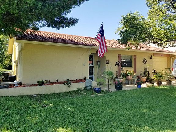 Welcome home to this adorable 1/1 with LARGE BONUS ROOM which could be a 2nd bedroom. Master bedroom boasts a walk-in closet and lots of room. Kitchen has newer counters and lots of cabinets. The bonus room has a closet added so it could be used as a second bedroom, guest room, man cave or office. Don't worry about not having parking with this villa because it comes with its own garage. The corner lot features extra space and a luxurious yard. The back has a quaint and private patio area so you have some room for entertaining. This villa features everything a traditional home has, BUT with the added roof free maintenance. It also has an alarm system, new tile roof, laminate flooring and more. It is a must see. Relax by the community pool and be the envy of all of your friends!