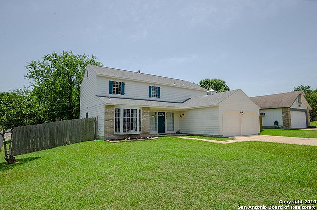 LARGE CORNER LOT!!! Great curb appeal two story home 4-bedroom 2.5 bath with master bedroom downstairs and a large walk in closet and tub/shower combo. Generous family room with fireplace. Chef's delight granite kitchen w/ abundant counters and planning center. Texas sized game room w/ wet bar upstairs along w/ ample bedrooms. Patio overlooking roomy backyard for lots of fun. Convenient to Randolph AFB, Loop 1604, IH 35. This home won't last long!