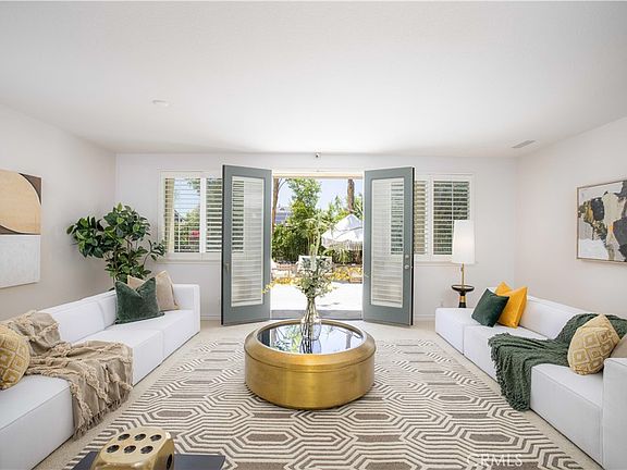 This stunning and inviting 4-bedroom, 3.5-bathroom property is ready for lease. As you enter, you are greeted by a grand entryway with a vaulted ceiling over 15 feet high and elegant hanging ceiling lights, leading to an open floor plan. The spacious family room, perfect for gatherings, is filled with natural light from numerous large windows throughout the home. To the left of the entryway, the modern kitchen boasts granite countertops, a generously-sized island with ample breakfast and bar-style seating, and opens to the dining area, living room, and a versatile den/office space that can easily be converted into an additional bedroom if desired. The first-floor bedroom (guest suite) features its own private bath, ideal for guests. Elegant roundabout stairs lead to the second floor, where you'll find a convenient separate laundry room and three additional bedrooms, including the primary suite. The primary suite accessed through double doors, is spacious and features a large private bathroom with separate his-and-hers walk-in closets, a separate bathtub and shower, vanity area, and dual sinks. The front-facing bedroom on the second floor offers access to a large balcony patio, perfect for enjoying sunny Southern California days and stargazing in the evenings. Additional features include French doors leading to a well-sized backyard, perfect for entertaining, and a unique, deep side-by-side two-car garage plus a separate one-car garage. The one-car garage offers flexibility for use as a workout or utility room. Lease terms negotiable.