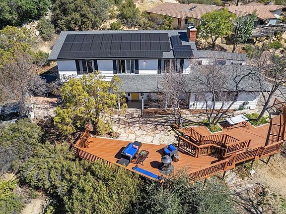 Escape to this Fabulous Pine Valley Retreat with stunning mountain and valley views from the home as well as the expansive outdoor space showcasing a gorgeous view deck and multiple patio areas—perfect for entertaining or unwinding in nature. So much Charm & Character! Step inside to discover 4 spacious bedrooms, including a luxurious primary suite with a magnificent brick fireplace. The cozy family room also features a brick fireplace, adding warmth and character. The spacious kitchen boasts a breakfast bar, ample pantry space, and double ovens—ideal for cooking and gathering. A versatile loft area includes a small room, perfect for a home office with a view or extra storage. The home also features a large dining room accented by patio French doors. The property is surrounded by mature landscaping and a variety of fruit trees, including peaches, apples, nectarines, plums, pears, and more—all supported by a irrigation system. Modern upgrades include an owned solar system with 31 panels and 2 Tesla batteries—providing peace of mind during power outages. Additional upgrades includes new HVAC, a whole house fan, a smart NEST thermostat, and a 2023 hot tub—perfect for relaxing with friends and family. An approx. 300 - 350 sq ft outbuilding offers great storage potential or could be converted into an ADU (buyer to verify). The lower lot provides incredible potential for animals, an ADU, or other creative possibilities. Enjoy the best of Pine Valley living with nearby hiking and biking trails, a seasonal creek, and a vibrant community featuring events like Pine Valley Days and Movies in the Park. Just 10 minutes from Mount Laguna, this peaceful retreat offers the perfect blend of comfort and nature. Don’t miss this unique opportunity!