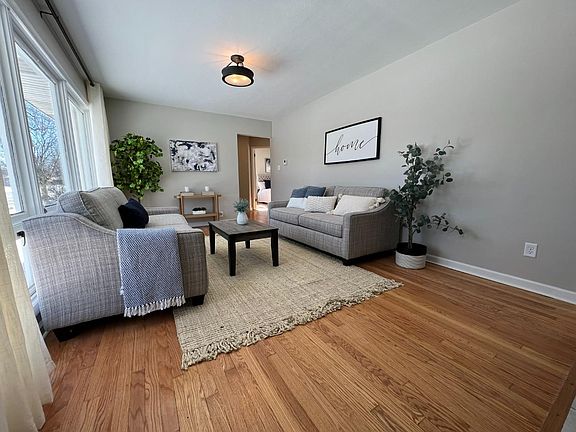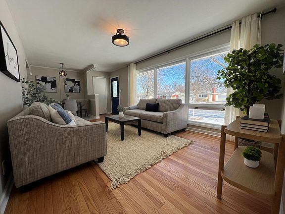 Don't miss this charming, beautifully updated ranch home! The brick fascia brings excellent curb appeal, and walking in the front door you are greeted by the spacious living room finished with hardwood floors, and large windows providing natural light to brighten up the space. The partitioned dining room leads into the tastefully updated kitchen with modern shaker-style cabinets, solid surface countertops and all stainless steel appliances includes.Continuing to the basement, you will find a wide open rec room, wet bar, spare room and additional bathroom. The large laundry room leaves ample space to work, and both the washer and dryer are also included with the home.